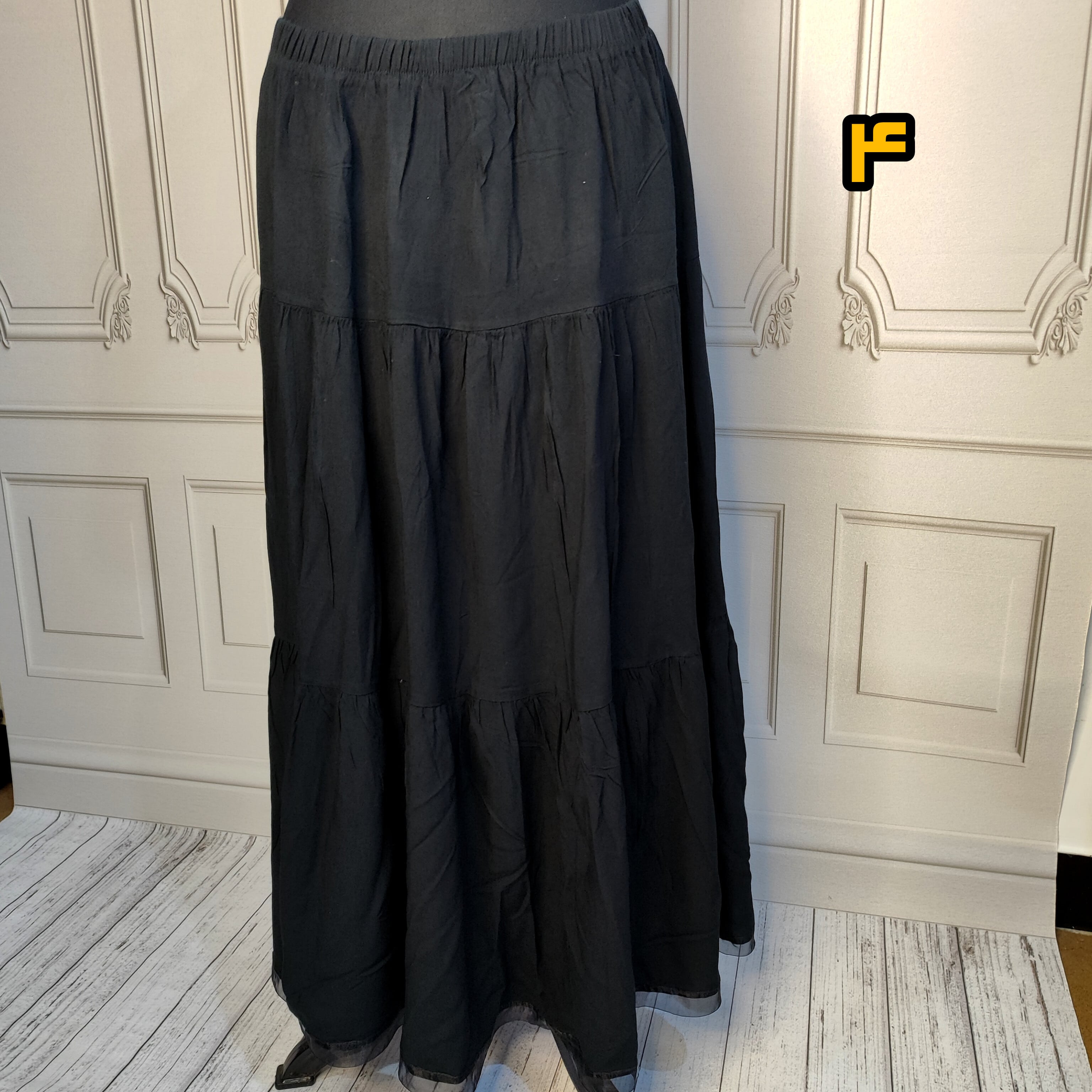 تخفیف به علت انبار گردانی دامن زنانه سه طبقه چین دار نخ شسته شده دور باسن ۱۴۰ مناسب برای سایز ۳۸ـ۴۸ نخی خنک درجه یک مناسب برای تابستان و گرما در چهار. رنگ