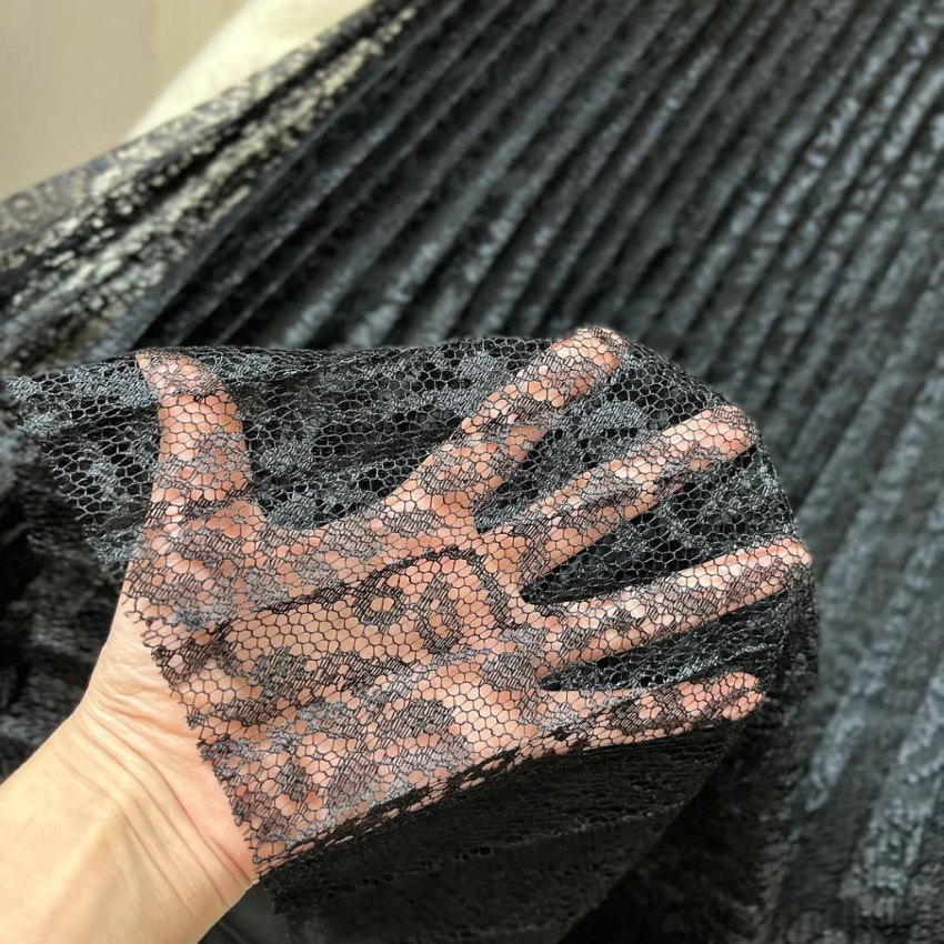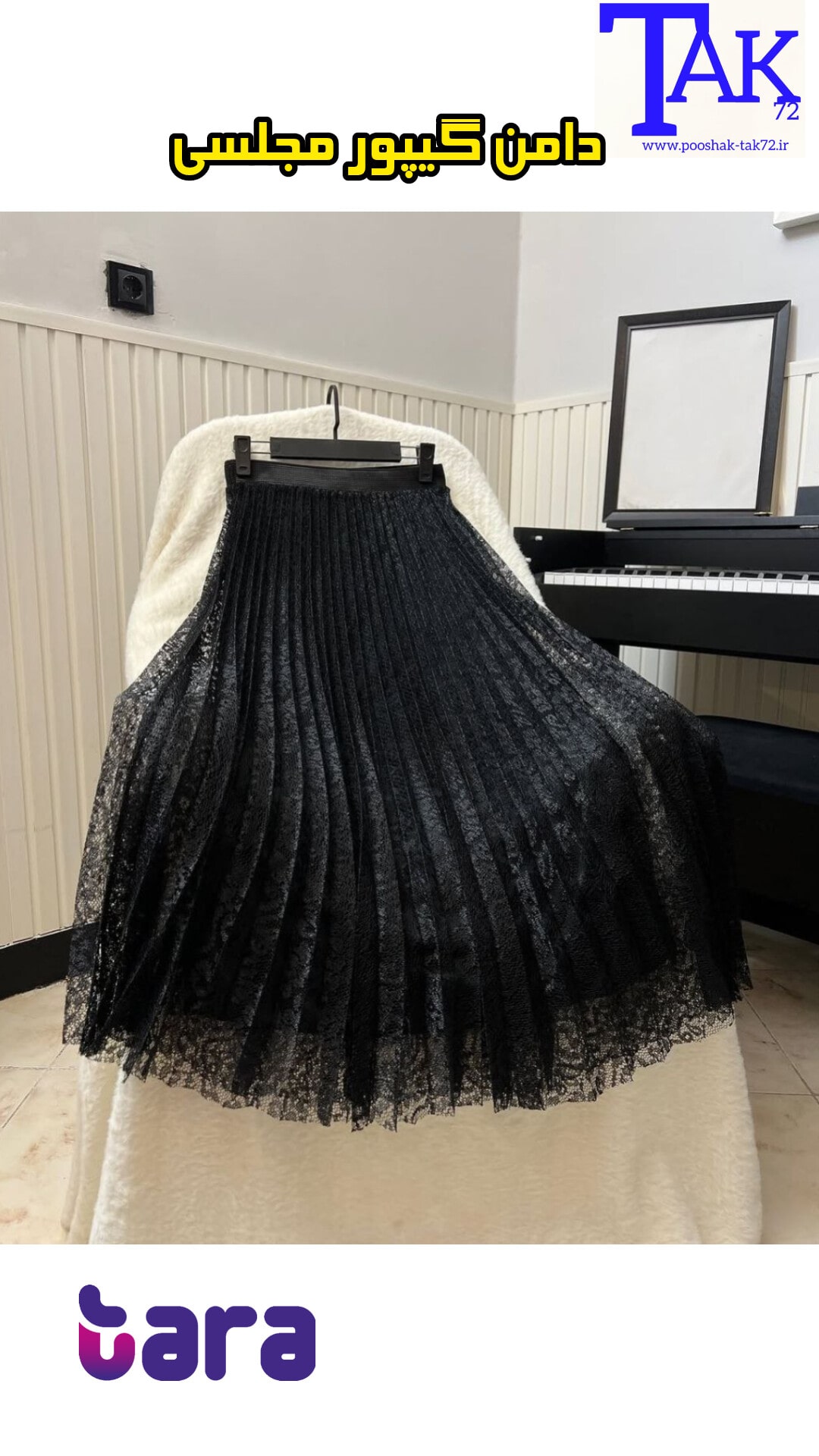دامن پلیسه پارچه دانتل نرم و لطیف آیتر کشی شده کمر کشی مناسب برای سایز ۳۶-۴۴ قد دامن ۱۰۳- دور باسن تا ۹۵-۱۰۰ قابل استفاده مشکی تک رنگ امکان خرید اقساطی در تارا