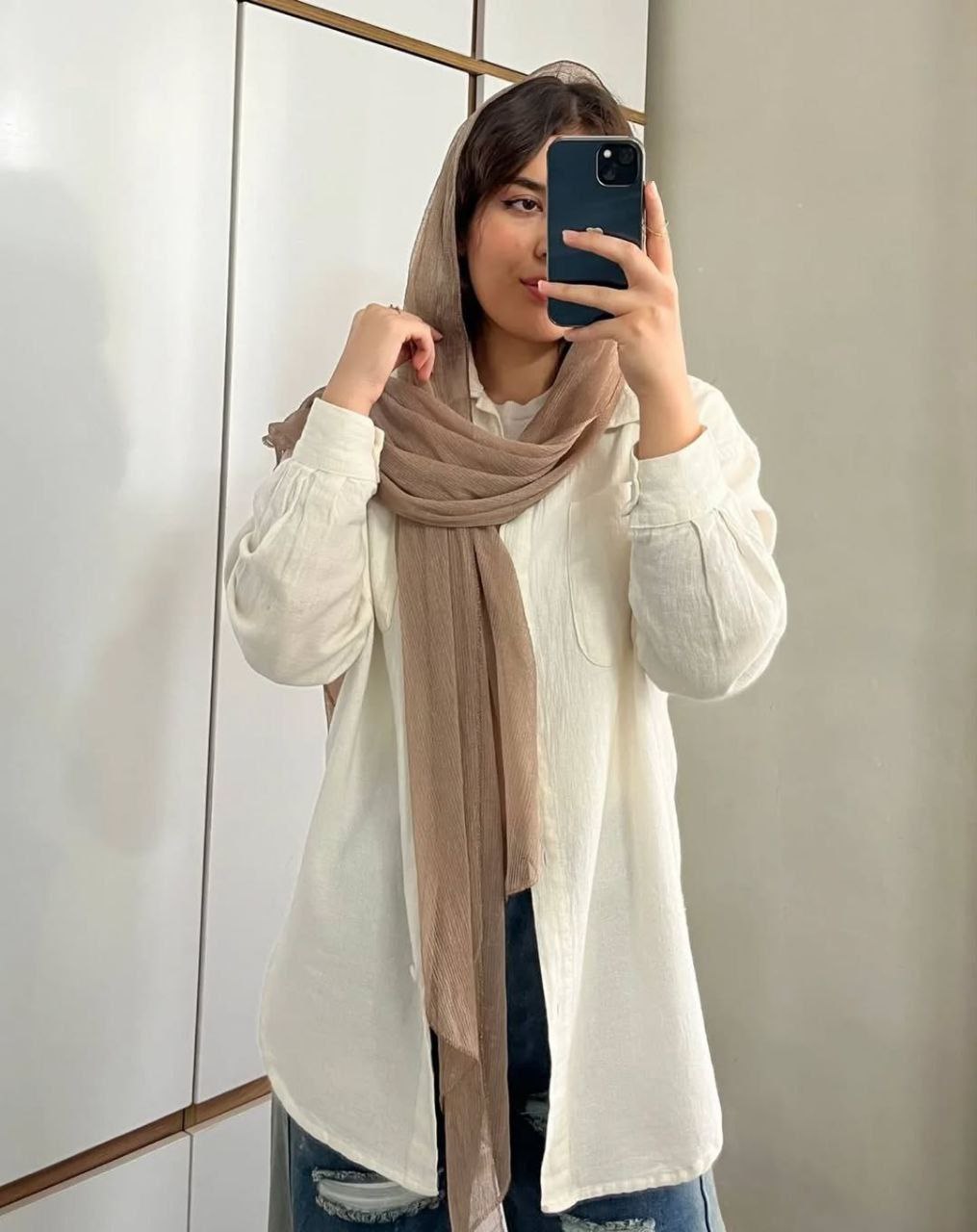 شال حریر پلیسه شال سبک و خنک ایستایی خوبی داره لبه تیغ ماهی قواره ۷۰در۱۸۰ حریر پلیسه خنک و سبک لخت و ریزش دار