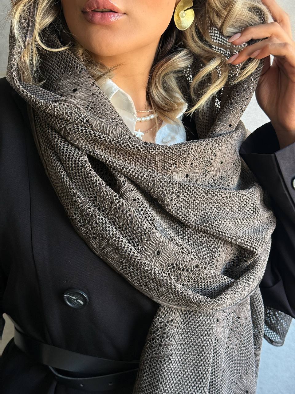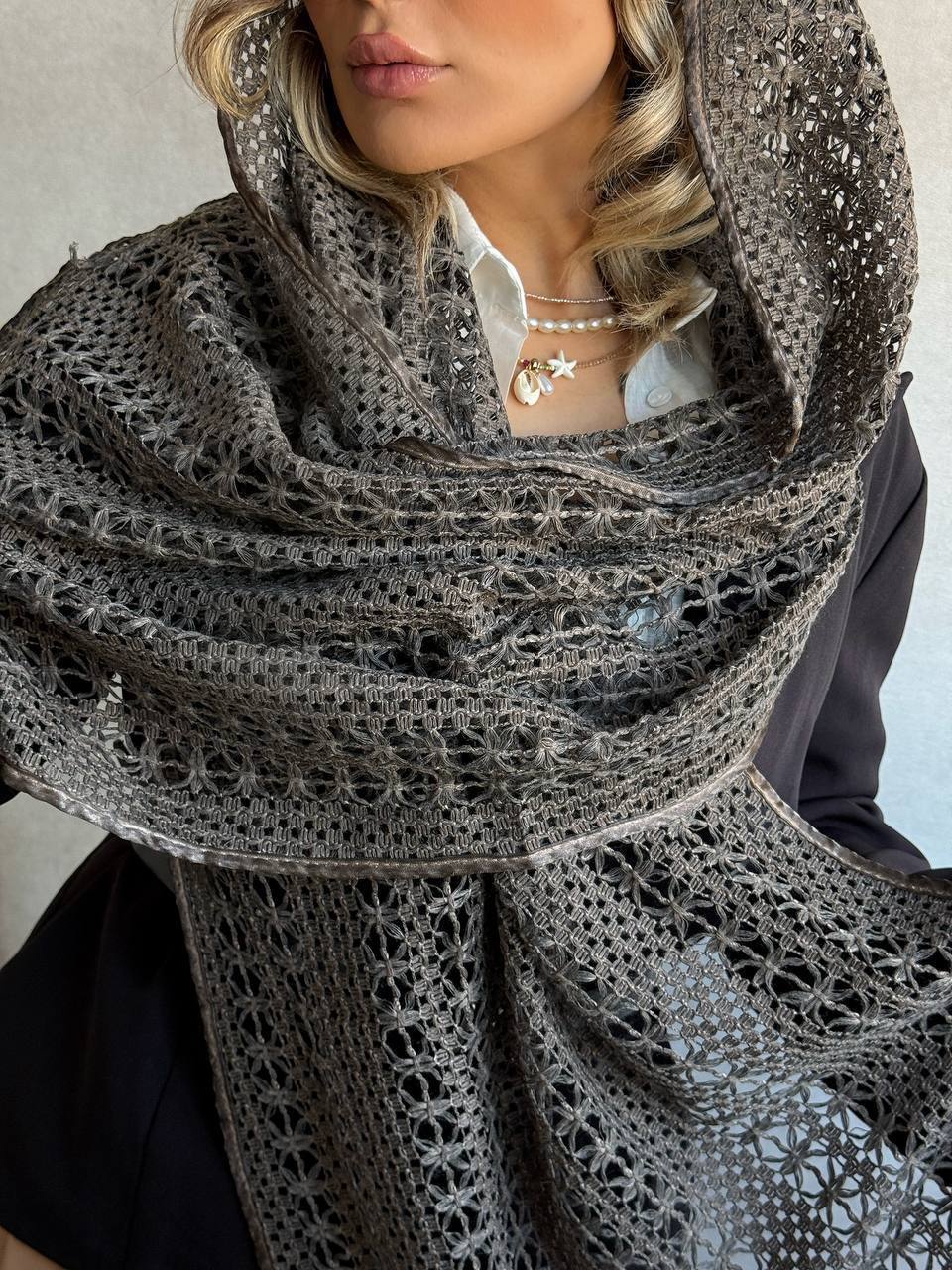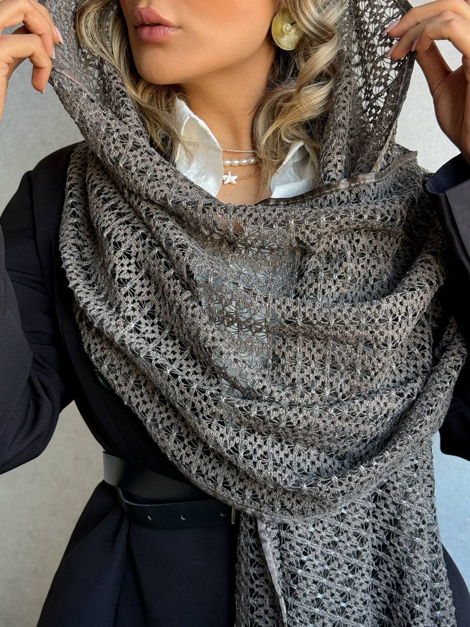 ترند ترین شال پاییزه سال با رنگ سال موکا قلاب بافی ایستایی بالا بافت لبه کار ساتن دوزی ده طرح متفاوت تعداد خیلی محدود