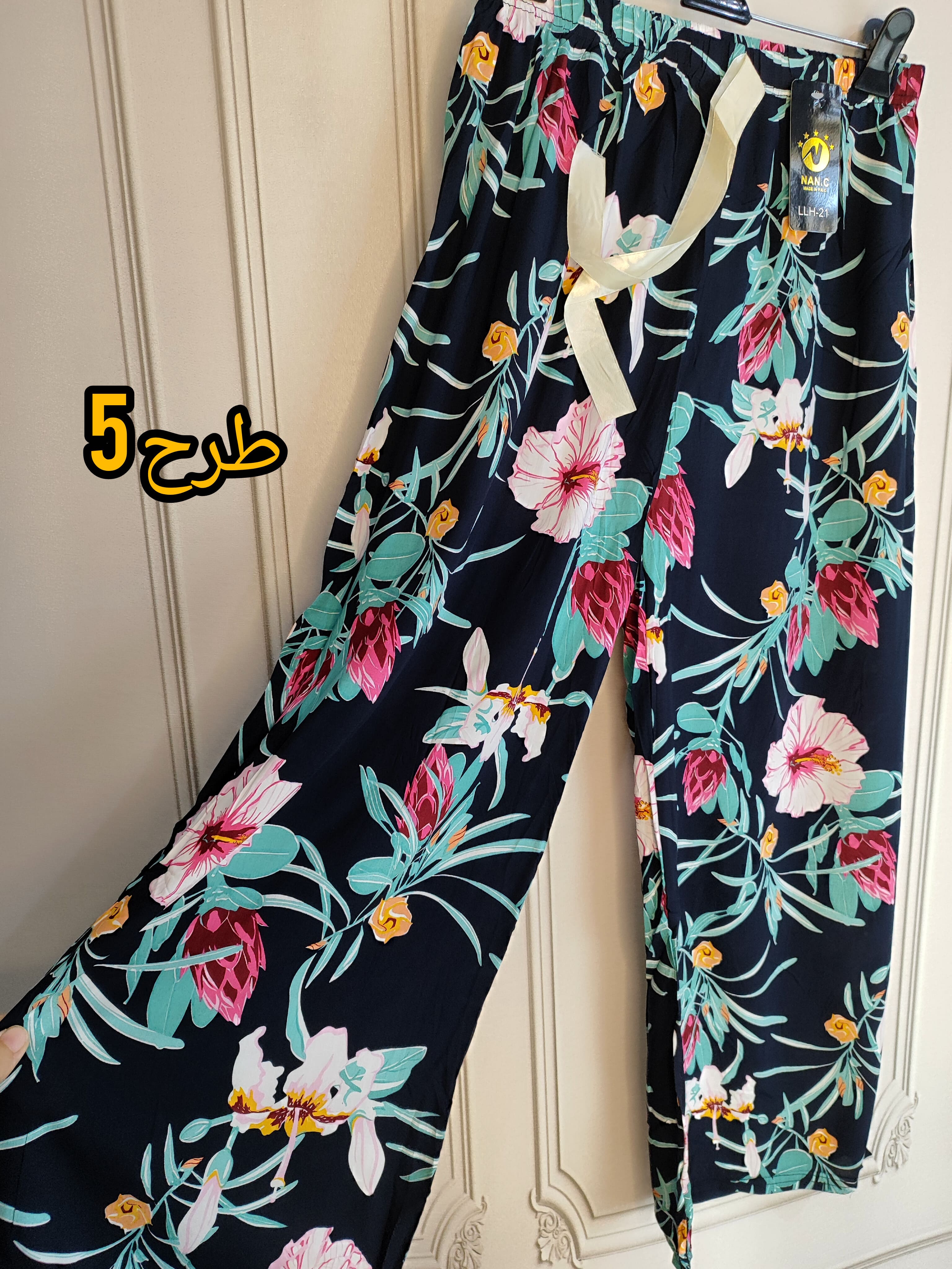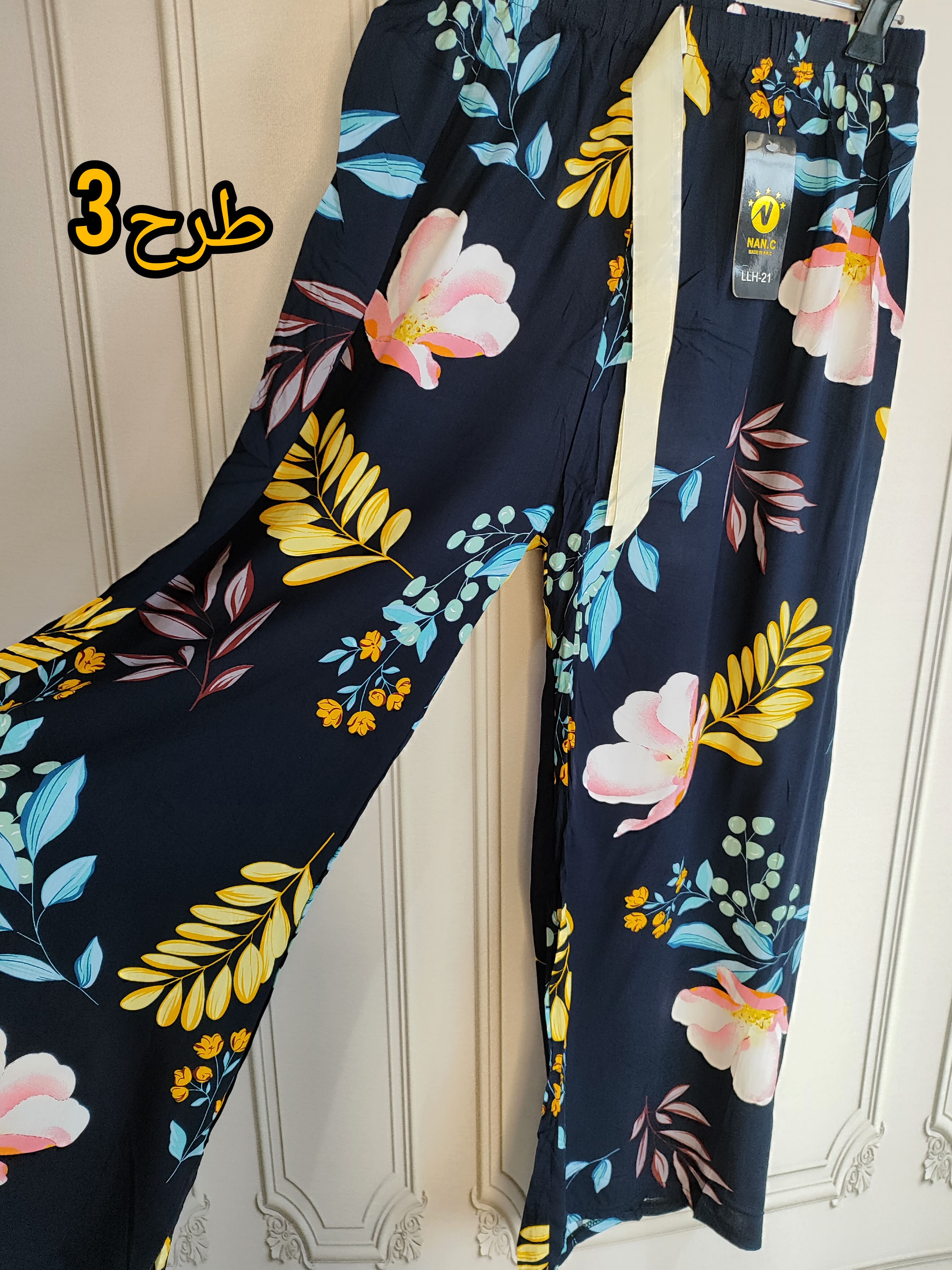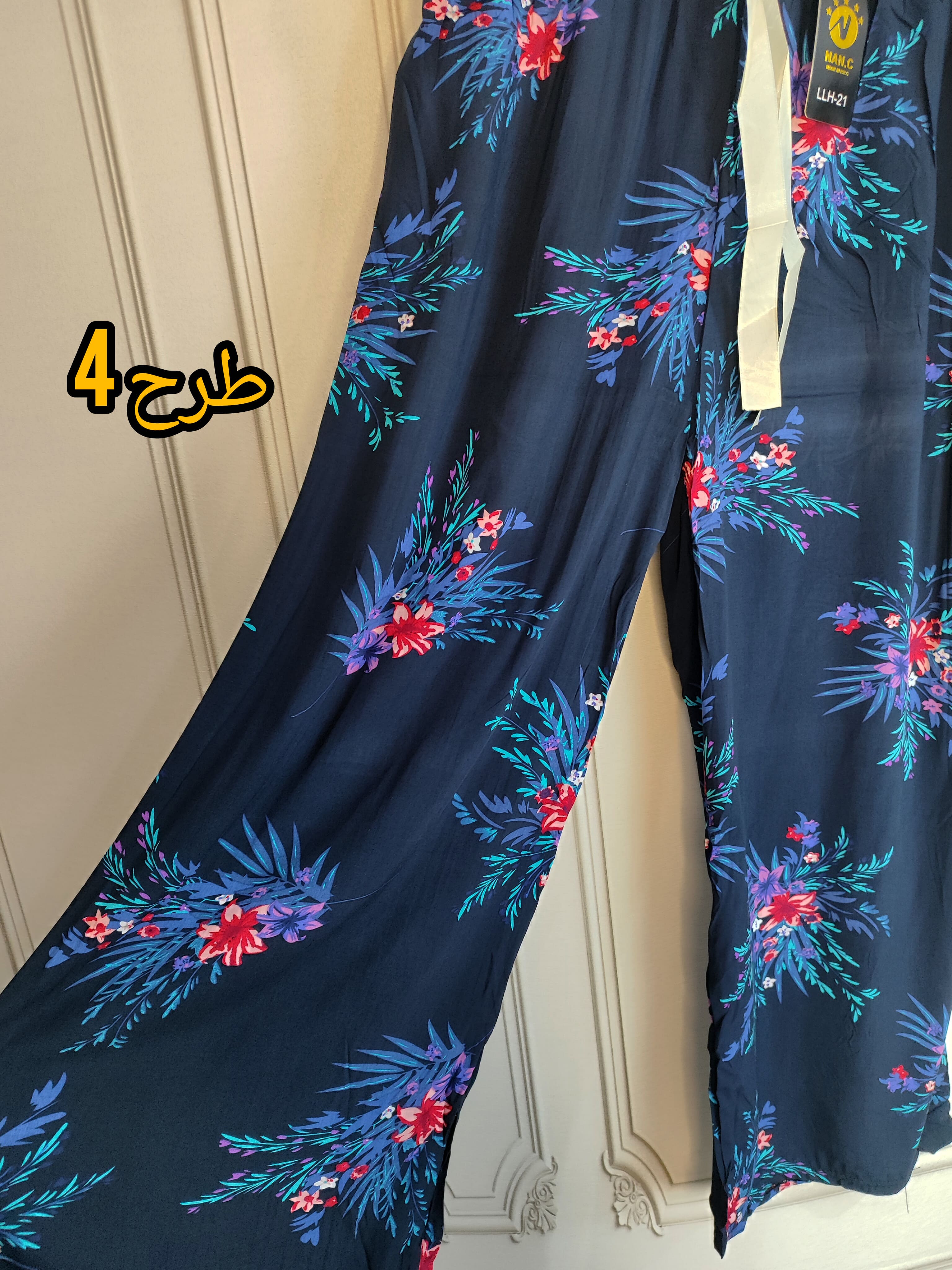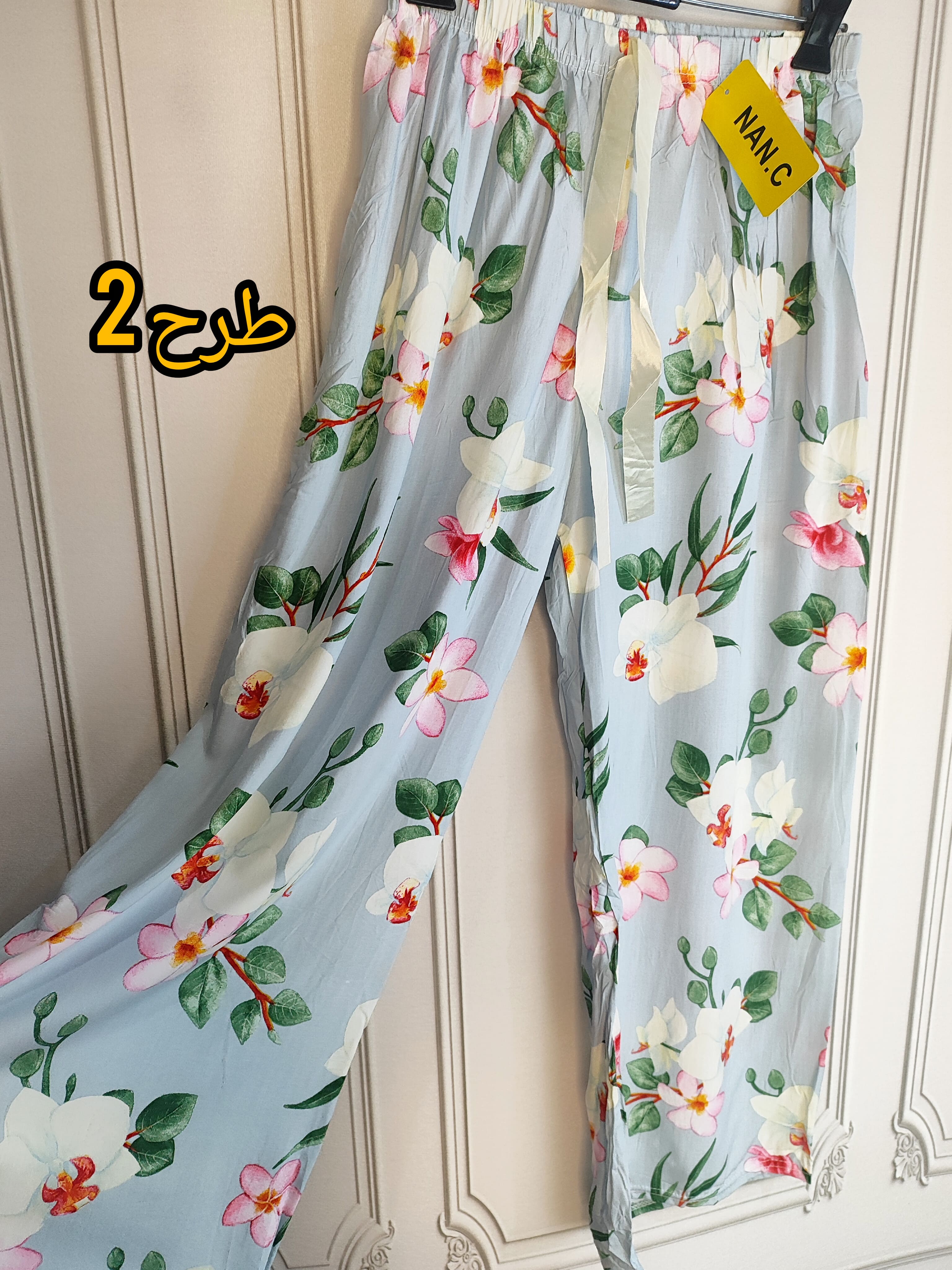 شلوار نخی وارداتی گلدار پارچه نخی وارداتی کمر کشی سایز ۳۶ـ۴۴ بدون آبرفت دور ران دور باسن قد شلوار نرم و لطیف و خنک