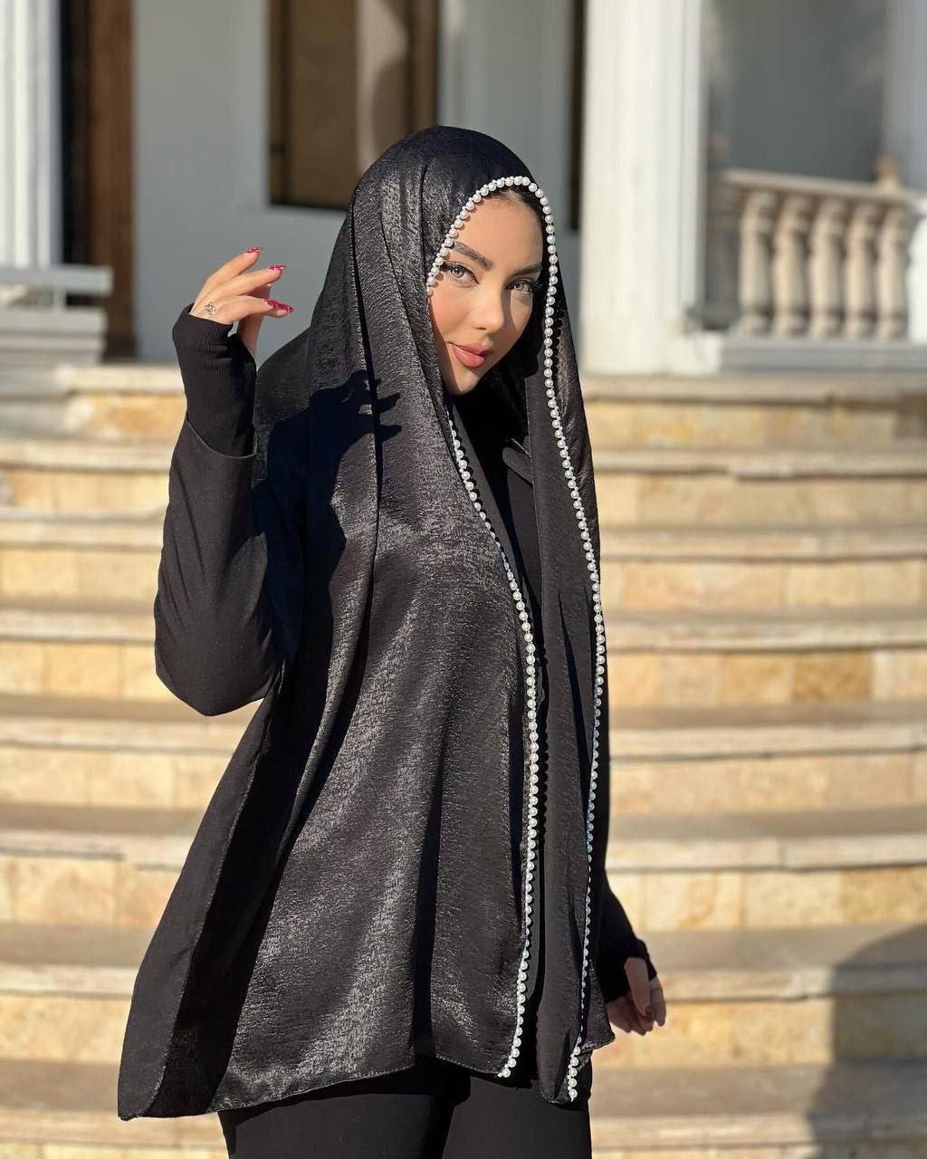 بخاطر مروارید های دوخته شده لبه شال اصلا سر. نمی خورد و به خوبی روی سر می ماند